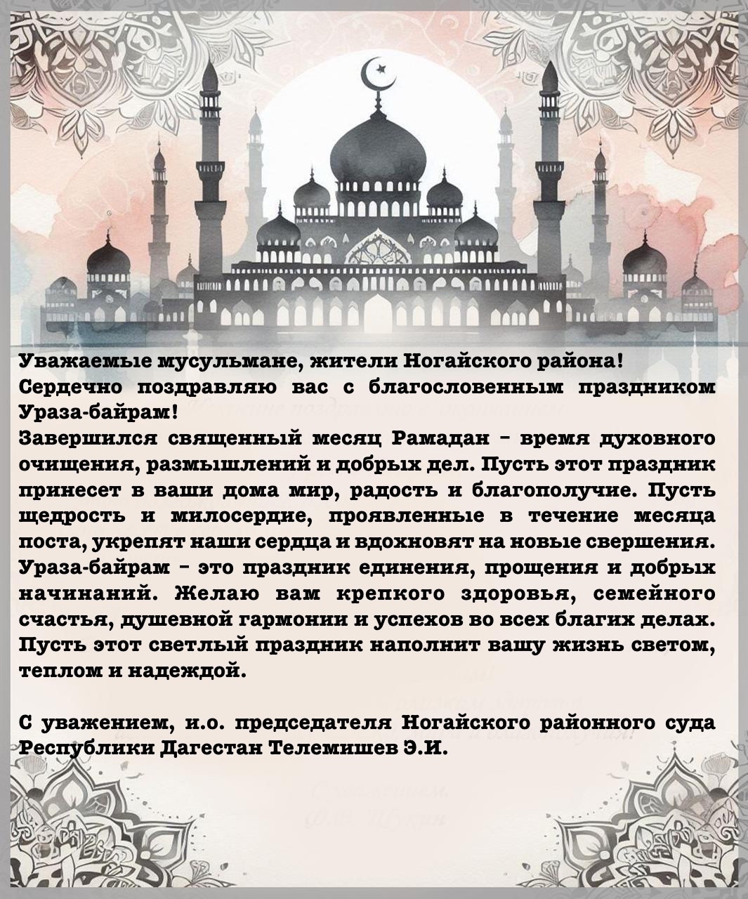 С наступающим праздником Ораза Байрам!